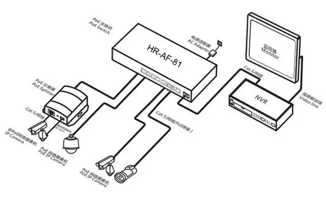 3.确定布线方案成本。将终端取电,布线的成本和用POE交换机的成本进行核算,目前POE交换机的供电距离在100-250米。无布局限制,就是节省了不少的成本。以洪瑞公司的HR-AF-81系列为例,HR-AF-81 (8口百兆POE交换机、符合IEEE802.3af国际标准、总功率120W)适合供电距离在100米以内无线覆盖、安防监控等工程项目,HR-AF-81系列,可灵活扩展网络而不受电力线布局限制,轻松布线是HR-AF-81的优势所在。