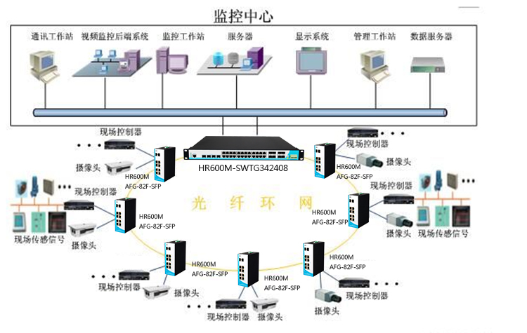 》光纤冗余环网,组网简单,稳定可靠。